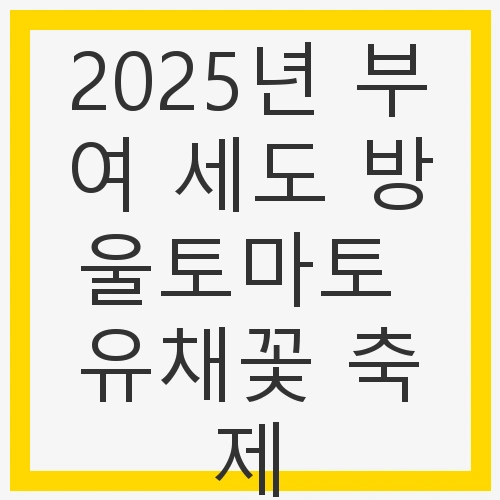 2025년 부여 세도 방울토마토 유채꽃 축제를 방문할 때는 몇 가지 팁을 기억해두세요. 첫째, 편안한 신발을 착용하는 것이 좋습니다. 축제장 곳곳을 돌아다니며 다양한 체험과 공연을 즐기다 보면 걷는 시간이 길어질 수 있습니다. 둘째, 카메라를 잊지 마세요. 아름다운 유채꽃밭과 즐거운 순간들을 기록할 수 있는 좋은 기회이니 만큼, 다양한 각도에서 사진을 찍어보세요.